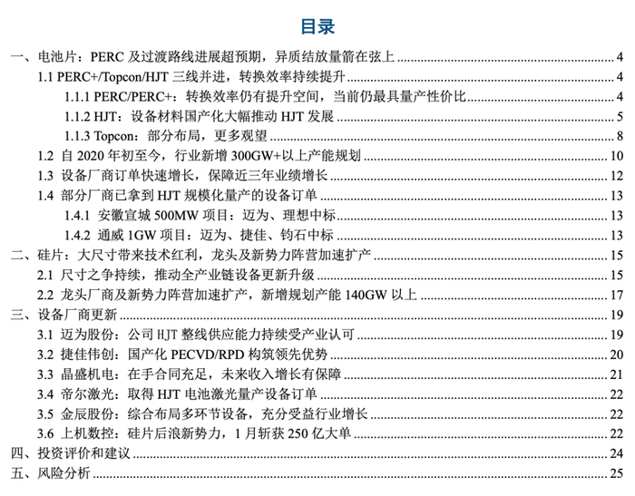 一、电池片:PERC 及过渡路线进展超预期,异质结放量箭在弦上