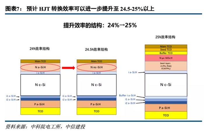 2)就转换效率而言, HJT产品更加成熟,转换效率已达到24.5%左右