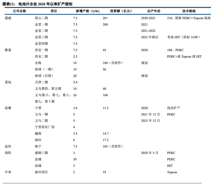 ②从市场层面看,PERC/PERC+的生命周期仍在延续,仍是最具量产性价比的技术路线。且在大硅片等因素的推动下,当前还有较大的产能缺口,扩产产能远超年初预期;
