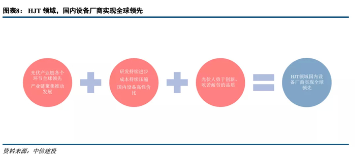 如果说在Perc电池片时代,国内设备厂商实现了模仿-追赶-平齐-超越这个路径的话,那么在HJT领域,可以说国内设备厂商完全实现了全球领先。一方面,本身我国在光伏产业链各个环节已经达到了全球领先的位置,产业链的聚集进一步推动了设备厂商的发展;另一方面,光伏行业是极度成本敏感型的行业,而国内设备厂商通过研发环节的持续进步、制造环节成本的持续压缩,使得国内设备具有国外厂商无法比拟的性价比优势。最后,国内光伏人勇于创新、吃苦耐劳,最终实现了在HJT设备领域的领先地位。