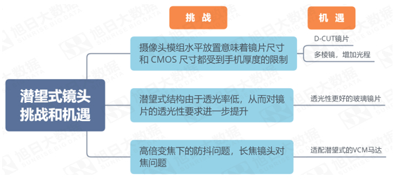 从专利上来看,苹果布局潜望式镜头的最初目的可能是为解决后置摄像头凸起的难题。由于苹果一直以来对于推出新功能都比较谨慎,本次苹果要上长焦潜望式摄像头的消息可以说是给行业内发展潜望式技术的企业打了一剂强心针,也从侧面验证了潜望式摄像头在消费者体验上反响良好,未来市场增长的确定性增强。 潜望式结构在解决了镜头组长度限制的难题同时,也带来了新的挑战和机遇: