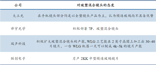 各大镜头厂商对玻塑混合镜头的态度: