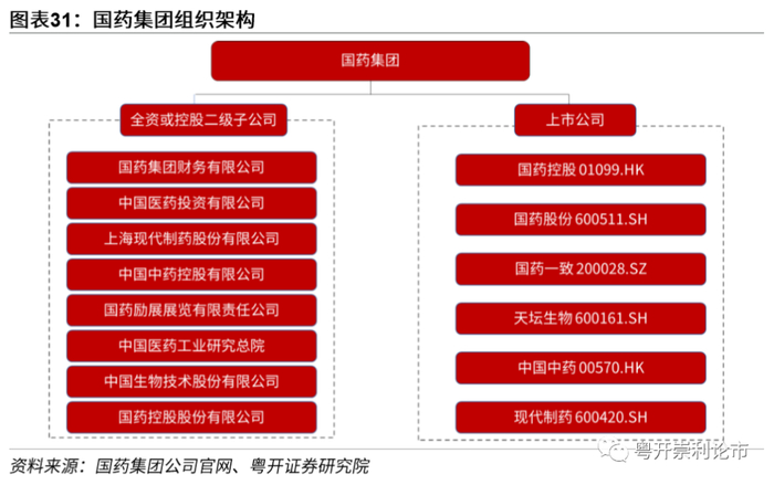 国药集团是由国务院国资委直接管理的唯一一家以医药健康产业为主业的中央医药企业,是国家创新型企业。旗下有1500余家子公司和国药控股(01099)、国药股份、国药一致、天坛生物、现代制药、中国中药(00570)6家上市公司,员工总人数15万人。本次负责公共卫生事件疫苗研发的武汉生物制品研究所和北京生物制品研究所属于中国生物技术股份有限公司的下设研究所,中国生物技术股份有限公司为国药集团下属的成员企业。