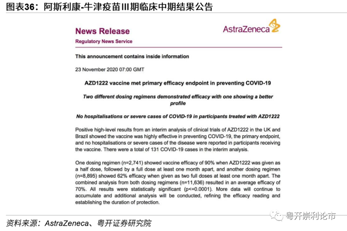 我国共5款公共卫生事件疫苗处于临床三期,国药集团两款灭活疫苗或于12月中下旬率先上市。我国共5款公共卫生事件疫苗处于临床Ⅲ期,包括三款灭活疫苗、一款腺病毒载体疫苗和一款重组蛋白疫苗。其中,三款灭活疫苗分别由科兴生物(SVA.US)、国药集团北京所和国药集团武汉所研制;腺病毒载体疫苗由康希诺(06185)/军科院共同开发;重组蛋白疫苗由智飞生物/中科院微生物研究所共同开发。目前,国药集团的两款灭活疫苗处于领跑地位,已于11月末提交上市申请。根据12月2日孙春兰副总理的发言和12月4日王军志院士的演讲,我们认为,国药集团的灭活疫苗将于12月中下旬作为全国首个公共卫生事件疫苗获批上市,充分享有先发优势。