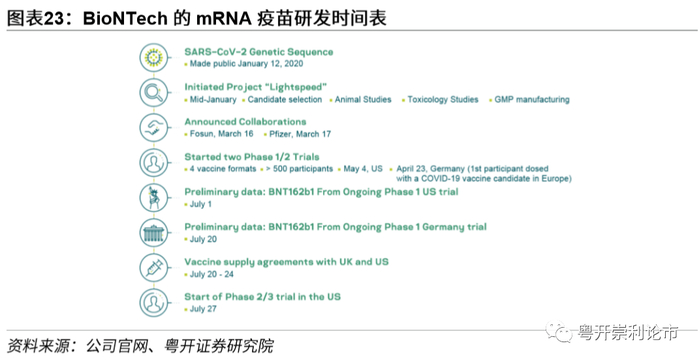BioNTech的公共卫生事件疫苗进展顺利,有望在底获批上市。11月末,BioNTech和辉瑞表示已向欧洲药品管理局(EMA)、美国食品药品管理局(FDA)和英国药品和保健品管理局(MHRA)提交了有条件上市许可或紧急使用申请,有望在年底获批。11月30日,欧洲药品管理局已确认BioNTech和辉瑞成功申请公共卫生事件候选疫苗BNT162b2有条件上市许可。12月2日,英国政府接受了独立的英国药品和医疗器械监管署(MHRA)的建议,批准辉瑞/BioNTech公共卫生事件疫苗的紧急使用,自12月7日向全英国人民供应公共卫生事件疫苗。