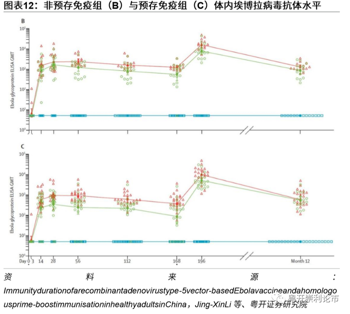 腺病毒载体疫苗安全性高,但有效性不足。腺病毒载体疫苗的优点一方面在于病毒载体本身可以提供一定的免疫刺激,部分取代了佐剂的作用,因而相对安全;另一方面在于不同的抗原可以使用同一种载体传递系统,一次免疫便可以实现多种疾病机体抵抗的效果。但腺病毒载体疫苗研发需要考虑如何克服“预存免疫”。预存免疫是指若患者过往曾经感染过Ad5并存在预留抗体,当腺病毒再次进入体内时,体内的腺病毒抗体会优先攻击载体,降低疫苗效果。在临床中,科学家曾将埃博拉病毒患者分为非预存免疫组和预存免疫组,实验发现,非预存免疫组注射埃博拉腺病毒疫苗后,体内的抗体水平远高于预存免疫组抗体水平,证实了预存免疫理论的科学性和真实性。