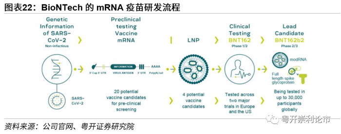 mRNA疫苗属于核酸疫苗,是指将在体外合成病毒相关序列mRNA传递到人体细胞内形成免疫。与灭活疫苗和重组疫苗相比,mRNA疫苗的生产无需依赖细胞扩增的过程,生产更容易放大。目前全球共有两款mRNA疫苗进入临床Ⅲ期,分别是美国Moderna公司研发的mRNA疫苗和美国辉瑞(Pfizer)、德国BioNTech共同研发的mRNA疫苗。上述公司均于11月对外公布了疫苗Ⅲ期临床最终数据,并提交上市申请。