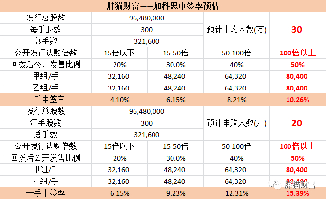胖猫分析:从中签率角度看,由于此次加科思入场费4242.32港元,入场费定价偏高。由于公司本身受资本热捧,加之研发管线还有管理团队有亮点,预计最终超购会超100倍。预计加科思一手中签率在10%-15%左右,预计申购100手以上稳中一手,中签水平较低。