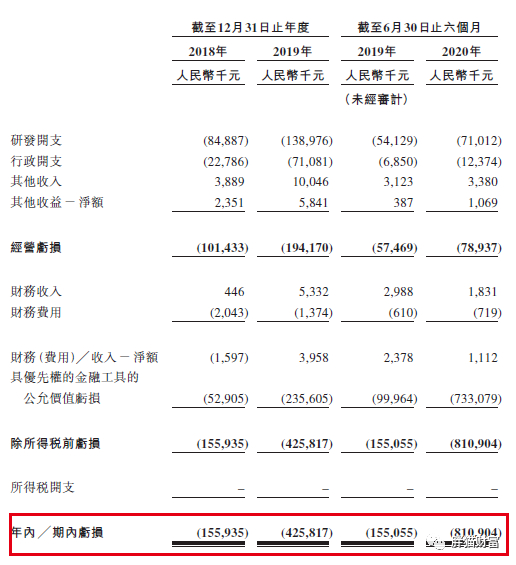 净亏损:于2018年、2019年以及截至2019年及2020年6月30日止六个月期间,我们的亏损分别为人民币155.9百万元、人民币425.8百万元、人民币155.1百万元及人民币810.9百万元。亏损主要来自研发开支、行政开支及具优先权的金融工具的公允价值亏损,亏损额逐年加速上升。
