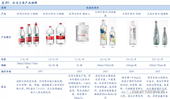2)婴儿水,此产品属于包装水细分品类,2019年增速达到74%,生产采用无菌生产线,符合对婴幼儿饮用水的特殊要求,人性化瓶身设计方便家长使用,水源取自低钠矿泉,钠含量≤20mg/L,产品具有奶粉属性,消费人群支付高价意愿度高,较高终端定价驱动销售增长;
