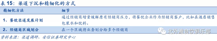 1. 通过渠道增量来缓解传统经销商的压力,提出餐饮渠道发展计划,开发餐饮特定大包装产品拓展餐饮渠道客户;