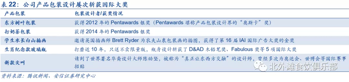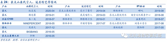 4)NFC果汁和炭仌咖啡:安信证券预计常温NFC果汁将是下一个风口,近两年保持较快增速,持续侵吞低浓度和中浓度果汁市场份额。公司炭仌咖啡搭配碳酸,与传统咖啡有所不同,口感不输碳酸饮料,农夫在制作炭仌的过程中,从烘培到萃取,整个过程中做到了自烘自萃,把控咖啡从生豆到咖啡萃取液的全过程,安信证券认为精品咖啡是下一个东方树叶级的产品,具有创新属性。