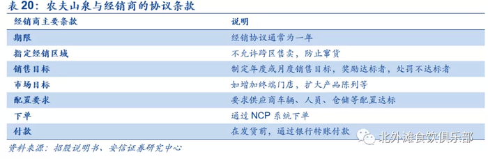 渠道方面,百岁山和景田两个品牌均采取自营和大经销商模式,终端网点覆盖数量约为200万家与怡宝相似,低于农夫,近年来公司逐步将一些优质重点省市渠道经营转为自营,采用经销商、分销商和终端的模式,对于终端的掌控力进一步加强,大商渠道的出厂价格更低,经销商权力更多,可以决定销售渠道类型和出货价格,转为公司自营后厂商对终端价格、市场投放方向、业绩指标考核要求更加细化。