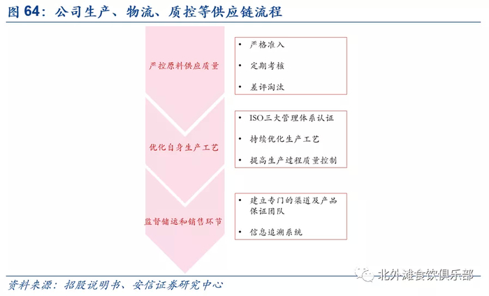 公司对于产品的质量进行严格把关,建立了符合国际标准的闭环企业质量管理体系,涵盖原材料及包装材料供应链、产品制造、物流及销售等环节。公司在产品加工流程中严格执行安全及质量标准,并设立了专门的渠道及产品保证团队、信息追溯系统,将质量控制延伸至储运和销售环节。根据招股说明书,截至2019年12月31日,公司服务于质量保障职能的员工约750名。