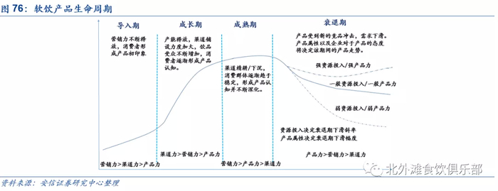 软饮产品通常在推出后前两年销量上升较快,到了第三、四年后增速出现回落,比如统一推出的海之源、小茗同学等产品。农夫的几款产品普遍生命周期更长,比如尖叫,近几年基本维持规模不变,得益于学生的消费群体定位和瓶身包装在消费后可以当作玩具;比如东方树叶,在推出几年后迎来爆发,在细分市场份额排名第一,农夫出新能力和打造爆款单品能力均优于竞品公司,安信证券认为这源于创始人对产品坚持、产品力强及企业决策机制。创始人对于产品的规划更为长远,专注健康天然,尤其看好某个产品的时候会愿意持续投入,这种坚持会转换为销售业务人员的执行力,从上架、铺货到推广营销都会保持一定市场投资力度,根据渠道调研,公司对于新品的开发推广给与渠道更大的支持,比如普通产品每年投入10%-15%费用支持,新品费用支持可以达到25%。