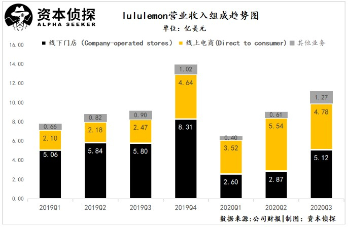 今年以来,lululemon营收结构发生了剧烈变化。