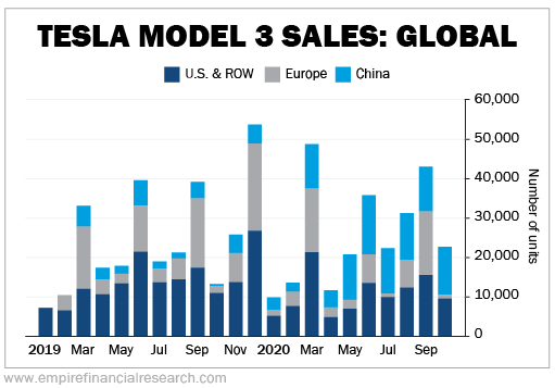 从风险的角度来看,我们更期待于看到在全球市场能给出一些更满意的答卷。根据特斯拉的Model3的最新销售数据,由于上海工厂投产,其中国的销量疯狂上昂,或但同时在一些比较成熟的欧美市场的销量却在下降,我们会期待看到其在2021年如何去解决这个区域板块不均衡表现的问题。
