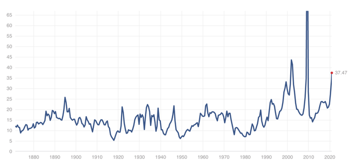 主要原因第一点:低利率,公共卫生事件下,美联储把近0的利率维持到2023年。当然不止美联储,各国央行都参与了。如果把这样的低利率放到DCF(现金流折现模型)里的折现率里去算一算估值,那分母的折现率非常非常低,那么估值就自然而然的会高起来。同时低利率也就意味着资金在面临债券和股票选择的时候,会更多的去流向股市。