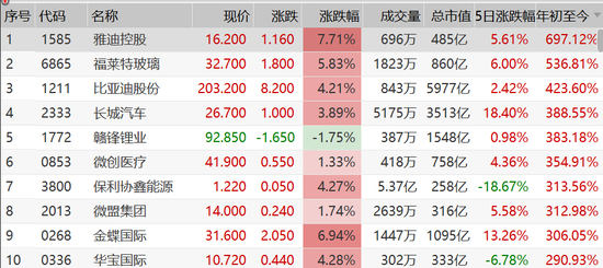 港股通方面,雅迪控股涨超6倍,成为港股通冠军;光伏股福莱特玻璃涨超5倍,成为亚军;巴菲特持股的比亚迪涨超4倍,成为季军。此外,赣锋锂业、长城汽车等逾40只股票成为翻倍股。卡森国际被沽空暴跌80%,成为最差港股通股票,东阳光药、太阳城、首控集团、中国忠旺等跌超50%。