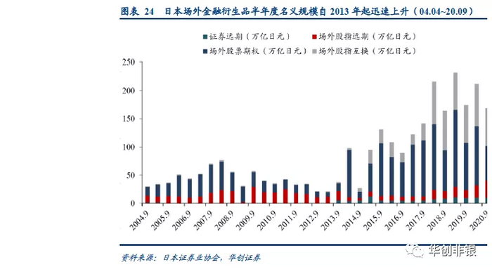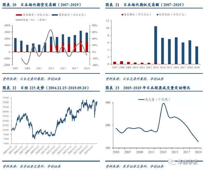 日本场内金融衍生品扩张发展转折点在2013年,场内品种及规模迅速扩张。