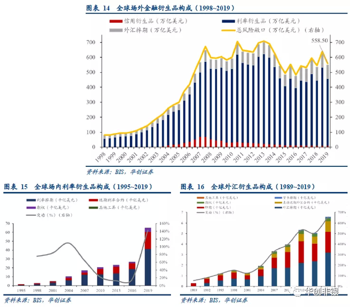 从全球来看,衍生品业务规模中利率类占比较高,2008年后风险敞口稍有收缩。