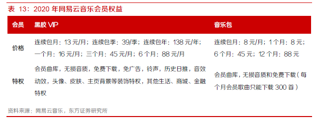 网易云音乐于2013年上线,不断发展成为腾讯音乐之后的第二大音乐平台,超过行业平均水平。我们预计20Q4网易云音乐会员达1111万,会员订阅收入为3.19亿元