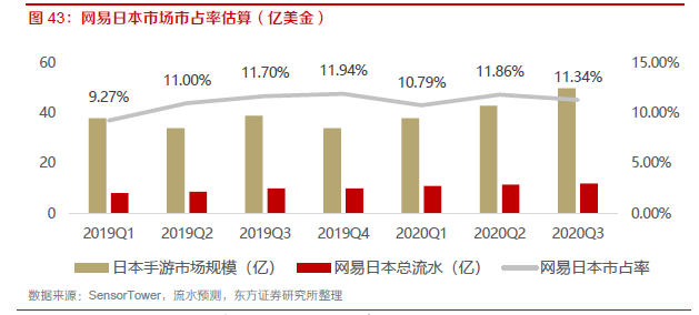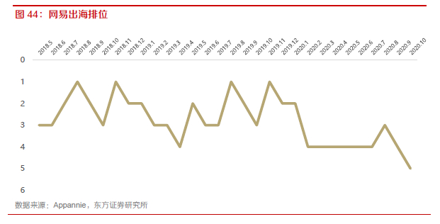 而从网易国内手游流水市占率来看,18~20年我们估测持续跑输行业。而2021年开始,我们认为此前长达三年的盘整期或将过去,市占率有望持续拉升。
