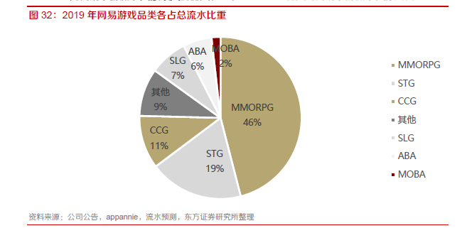 论证网易游戏稳固的基本盘逻辑:1)运行一年以上长线产品对手游流水贡献的占比稳定提升,现稳定至80%+。2)强势品类MMORPG 19年流水贡献约占网易总流水46%,且网易为此细分赛道的绝对龙头,超长线运营时间最长,上榜畅销榜前列数量最多。同时藏宝阁赋能超长线运营形成用户反哺,用户生态构建品类护城河。3)大厂的研发优势凸显,强大成熟的游戏中台为网易游戏提供技术以及美术支持,其中美术复用率超85%,美术资源库降低成本提高效率,研发端优势使产品长线运营ROI可控;4)网易出海日本已具优势,日本市场市占率约10%,大DAU《荒野行动》积累丰富本土运营经验,近3年稳居日本IOS畅销榜前列。5)游戏的全品类覆盖,多赛道并举均有核心产品,手游矩阵组合抗风险能力强,能够实现收入的稳健增长。