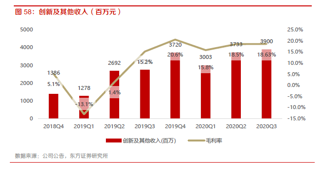 20Q3创新及其他业务实现收入为39.00亿元,占比平稳约为21%。网易云音乐收入增长高达三位数。