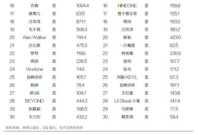 从版权获取上来看,网易获得日本最大的版权方Avex独家授权,拿下二次元市场,其用户于B站重合度最高;另一方面网易获得最大国风唱片公司米漫传媒授权,吃掉一部分中国风用户市场。
