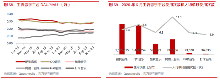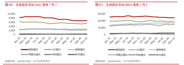 根据Questmobile显示,网易云音乐2020年11月MAU为1.47亿,同比环比基本持稳,目前网易云音乐MAU增速放缓,距离天花板尚有1.92倍空间,按照20H1同比增长率约10%估算,预计3-4年达到上限。