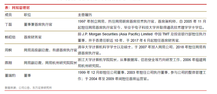 公司创始人兼CEO丁磊持有44.7%的股份,为公司的实际控制人和最大股东,创始人占据绝对主导地位,10年来持股比例均于44%以上,持股稳定。