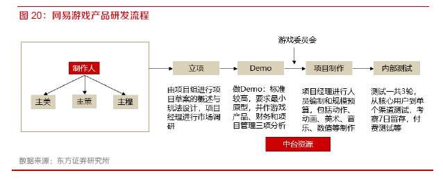 网易游戏自下而上来推动游戏项目研发,以研发项目组为核心(通常核心制作人/主策/主美/主程),合计研发周期1-4年不等;公司整体给予研发人员更大的话语权和试错空间,但也有游戏委员会对项目的立项和Demo来把控和审查。