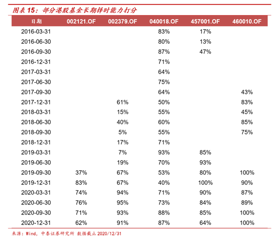 我们从Wind开放式基金的股票型与混合型中剔除被动与指数增强型基金,并加上QDII基金中剔除被动与指数增强的基金,通过每个半年报的全部持仓来区分当期是否为港股基金。