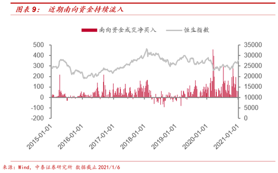 内地资金除了借道公募基金外,更多的内地资金通过港股通买入,南向港股通(包括沪港通下的港股通和深港通下的港股通)2015年以来累计成交128,558.23亿人民币,累计15,336.14亿人民币内地资金净流入港股。而近年来趋势更加明显,2020年全年南下资金净流入额5966.76亿人民币,而2019年全年南下资金流入规模为2217.78亿元,在2020年3月份下跌期间,也有近1370亿元资金流入港股。除此之外,2020年国内险资已斥资数十亿密集举牌港股7家上市,以险资为主的长线机构已发出增持港股资产的明确信号。