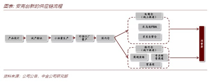 安克创新采取“自主研发+外协生产”模式,以产品力塑造品牌力。安克专注于产品的设计、研发与销售环节,研发方面,安克创新研发费用率5.9%;设计方面,安克创新多次获得德国红点设计大奖、iF设计大奖等国际奖项;而生产环节则被外包给严格管控的供应商和外协厂商。