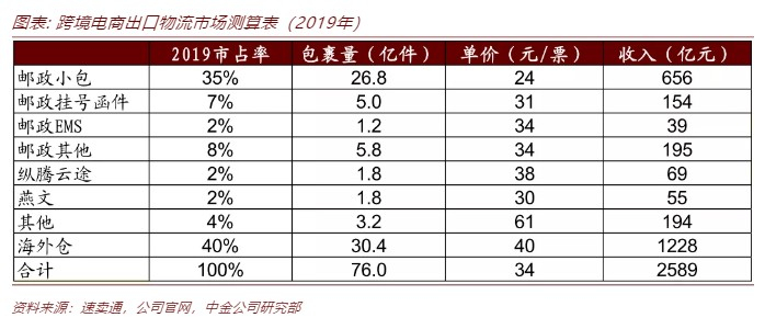 货源:跨境电商出口物流中,中国邮政占比约为39%。