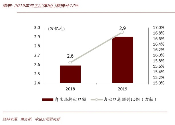 伴随跨境电商的发展,我国自主品牌出口正在逐年增长,据商务部数据,2019年,中国自主品牌出口额同比提升12%至2.9万亿元。