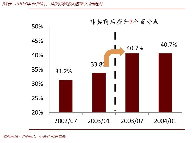 技术变革常常是模式萌芽的导火索,而外生冲击往往是模式质变的催化剂。以国内电商为例,虽然90年代就伴随互联网革命被引入中国,但真正的质变发生在2003年SARS爆发后。从2003年3月起,阿里巴巴(09988)每天新增会员3500人,季度环比增速达50%;每日发布的新增商业机会达到9000-12000条,同比2002年增长了3倍。SARS结束后,电商的热度不仅没有退去,反而步入加速成长。