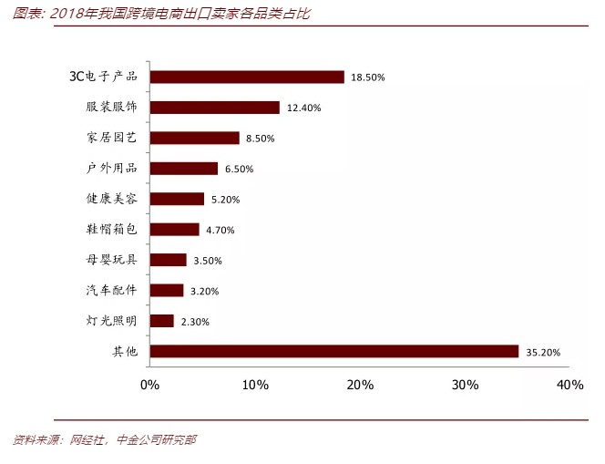 海外仓模式适用于高溢价消耗品。3C电子与纺织服装也是跨境电商出口的主要品类。2018年二者的跨境电商卖家数量占比为30.9%。3C电子和服装具有消耗快、溢价高的特点,其配送要求高频次、高时效,对物流费率的容忍度高,且存在一定规模的退换货逆物流需求,仓配模式更加适合二者的物流需求。