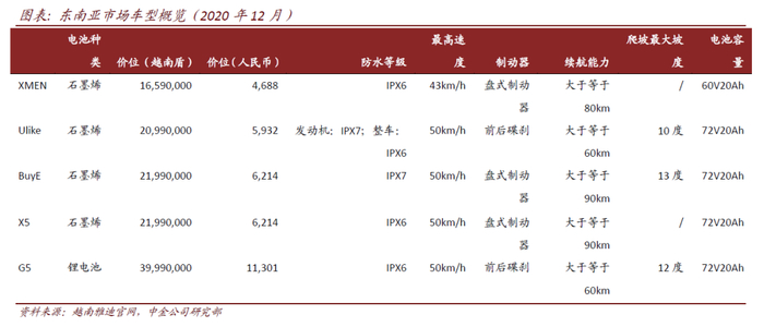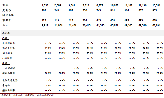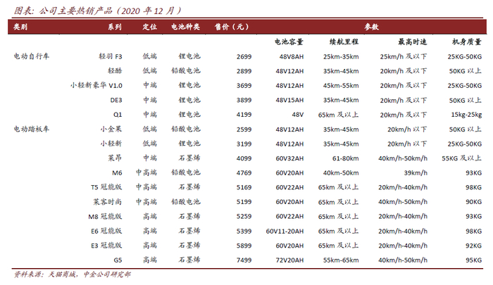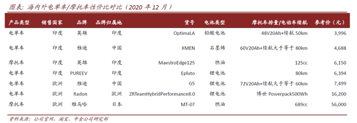 外延产品矩阵、发展服务生态,持续拓展海外市场。公司积极扩张电踏车、电摩产品,丰富产品矩阵。围绕新车销售,公司计划布局快充、换电站、服务站等生态圈,提升用户用车体验。电动二轮车海外市场空间较大,公司以越南为产能中心和起点,辐射东南亚+印度市场,通过塑造爆款车型以及与本地分销网络合作渗透欧洲市场。