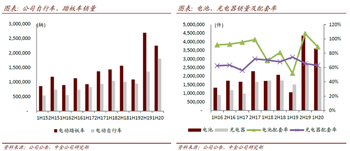 电动二轮车龙头地位稳固。2016年后公司市占率持续排名第一,新国标后更实现了快速提升。公司持续进行产能和渠道扩张,支撑长期销量增长。公司在电动自行车、电动踏板车两大品类中拥有多SKU产品矩阵满足多样化用户需求。公司保持高成长、快周转、现金流充沛,财务指标优于同业公司。