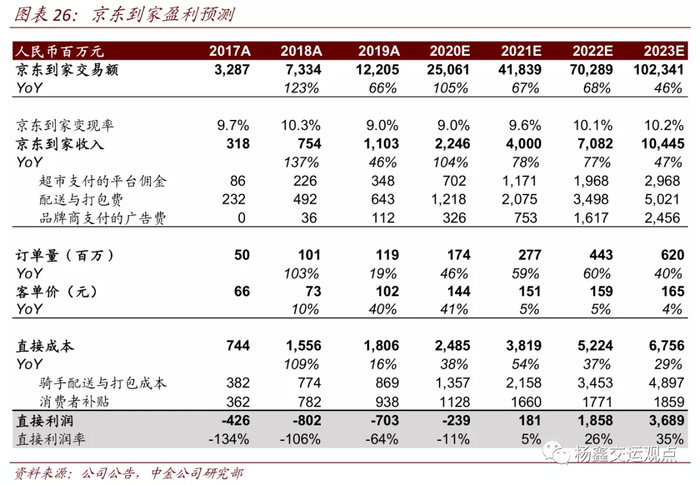 ►直接利润:我们预计京东到家2021年直接利润实现扭亏为盈
