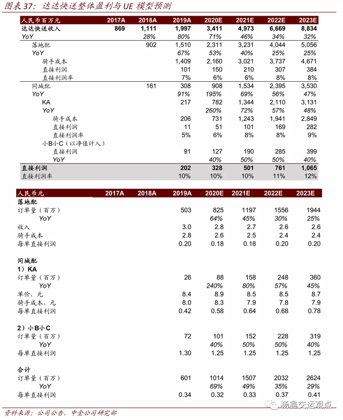 ►直接利润:我们预计达达快送2020-2022年直接利润分别增长33%/52%/52%