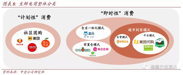 1)“计划性”消费(社区团购)vs“即时性”消费(超市到家、前置仓、仓店一体化)