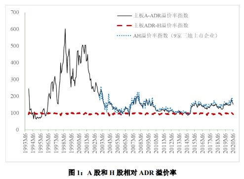 该论文通过对比A股、H股及ADR之间个股溢价率,发现H股和ADR之间价差极低,显示香港和美国市场高度融合,而A股相对于H股和ADR存在显著溢价,说明内地与境外市场存在分割。