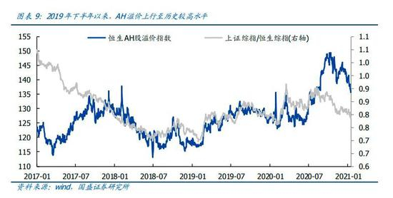 2020年以来,港股的表现整体落后于A股,当前AH股溢价指数较2016年1月以来的历史均值仍然存在一定的价差。国盛证券认为,本轮AH股溢价扩大很大程度是由于港股市场此前的弱势乃至超跌。