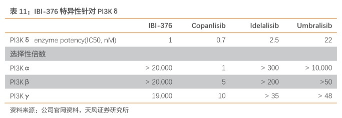 信达生物的PI3K的抑制剂(parsaclisib,IBI-376)从Incyte Pharma公司获得许可,该药经过改造,特异性针对PI3Kδ,减少了肝毒性。公司于2020年4月完成关键性临床实验首例患者给药,在国内处于第一梯队。