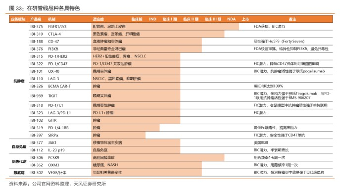 公司在研管线各具特色,多个品种具备全球首创或者同类最佳潜力。公司多个双特异性抗体是具备全球首创药物潜力,有望在同类产品中获得最佳疗效,具备强大的国际竞争力。