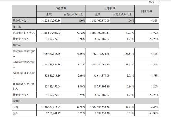 2020年上半年,巨人网络营收占比过半的手机游戏业务收入为6.96亿元,同比下滑6.16%。占到总营收仅四成的端游业务同样出现了下滑的情况,收入为4.74亿元,同比下滑5.24%。其他业务收入占营业收入比重合计4.28%。